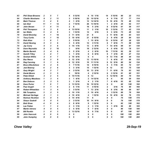 Many thanks to the staff at Chew Valley, Peter Hartley and Chris Bobby for running the two days and undertaking the results and all those anglers who competed.