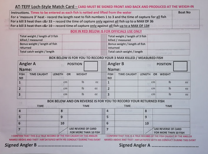 From 2020 one match card will be issued per boat with each angler scoring his boat partner’s catch.