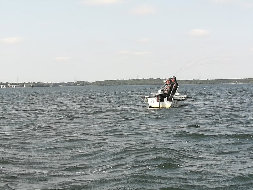 Blue skies and a north easterly wind greeted the competitors, which were far from ideal fly fishing conditions. Many anglers had been out and practiced in the run-up to the match and this was evident at the 10am start when there was a two-way split with the boats. Half the fleet headed to the North East side of the reservoir, from G Buoy to the Willows, and the other half focussed on the North West side, from Sanctuary Bay into Savages Creek.
