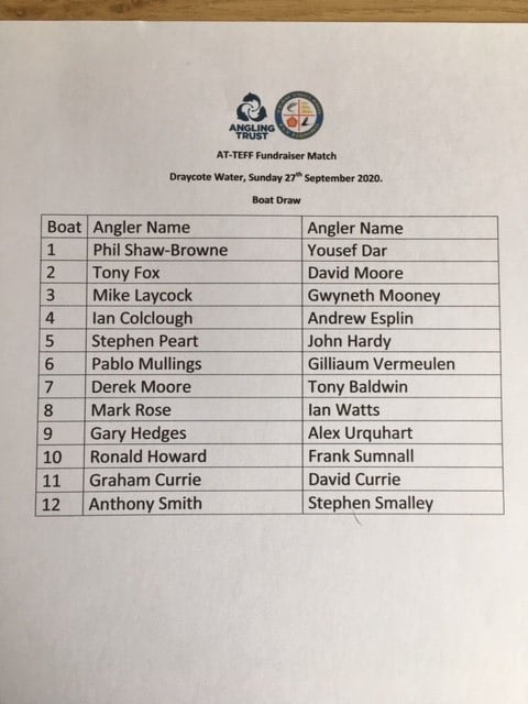 AT TEFF Fundraiser, Draycote Water, Sun 27th Sept: Boat Draw