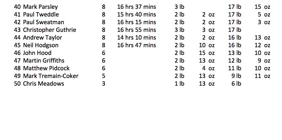 Results: 1st Martin Burgess 2nd Lloyd Pallett 3rd Alan Clark 4th Andy Cottam 5th Martin Barrett 6th Paul Sweatman 7th David Minall 8th Matt Kingdon 9th Michael Walker 10th Andrew Haskins 11th Richard Walker 12th Alex Johnstone 13th John Huckings 14th John Bowen 15th Paul Roach 16th Martin Faulkner