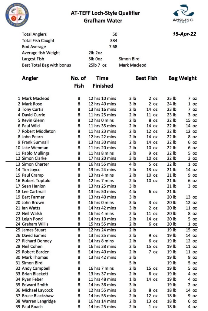 Friday 15th April – AT TEFF Loch-style Qualifier, Grafham