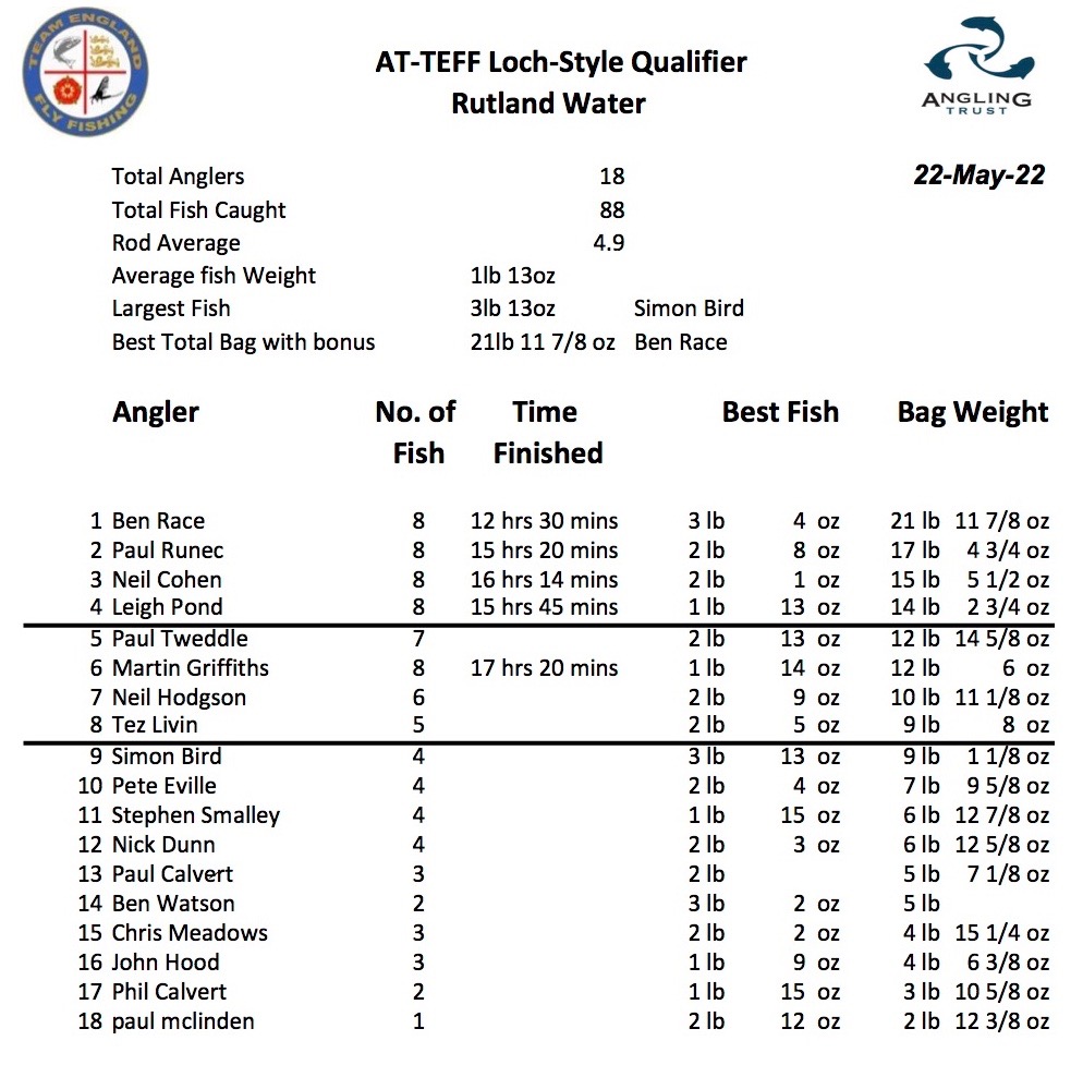 Sunday 22nd May – AT TEFF Loch-style Qualifier, Rutland