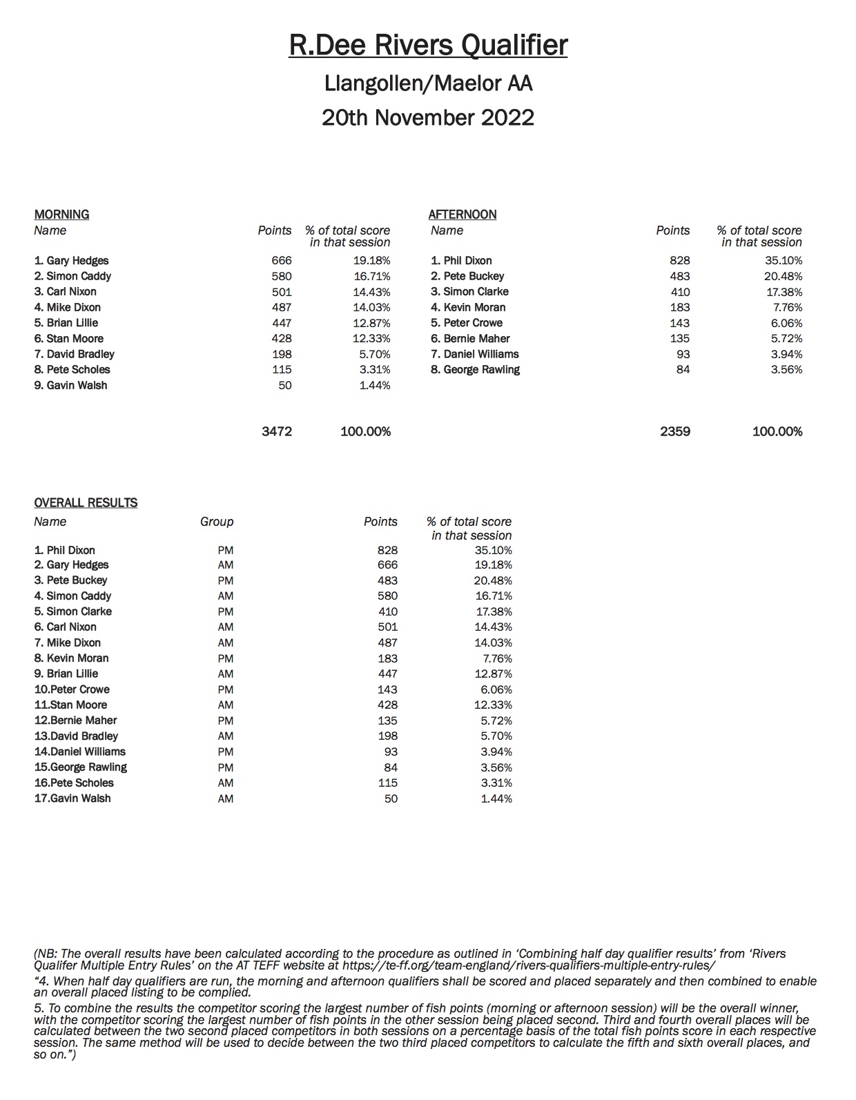 Big thanks to Peter Scholes for organising a great match, Llangollen & Maelor Angling for hosting, and all our competitors for travelling from across the country to compete.