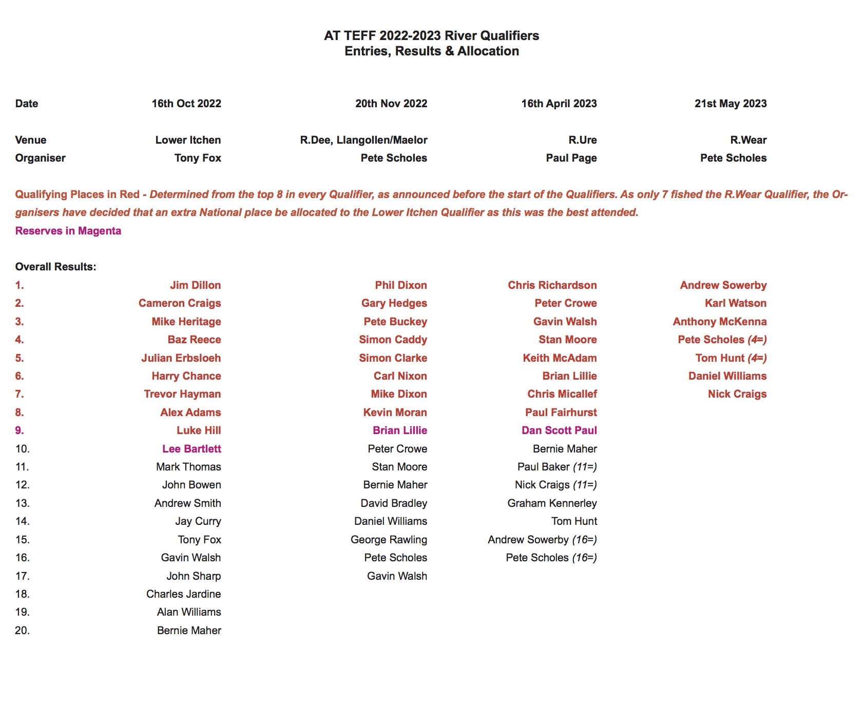 2022-2023 Rivers Qualifiers Entries, Results & Allocation spreadsheet