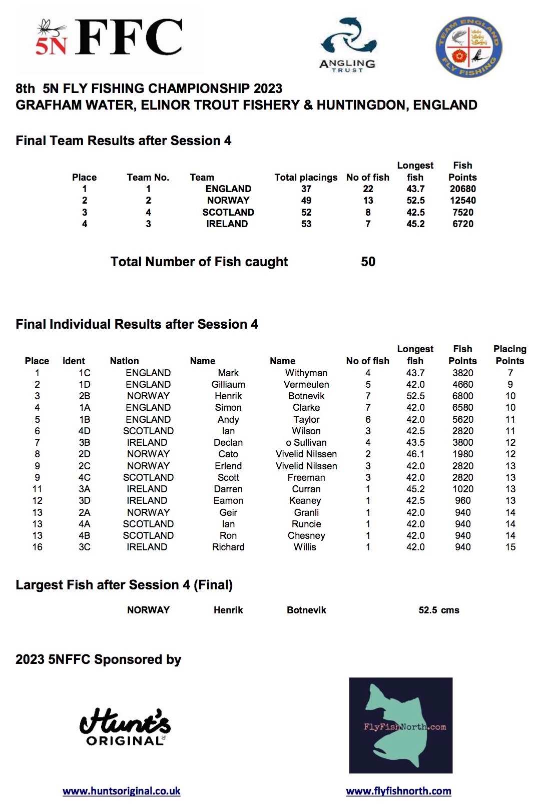 8th Five Nations (5NFFC) Fly Fishing Championship 2023 – England Take Gold