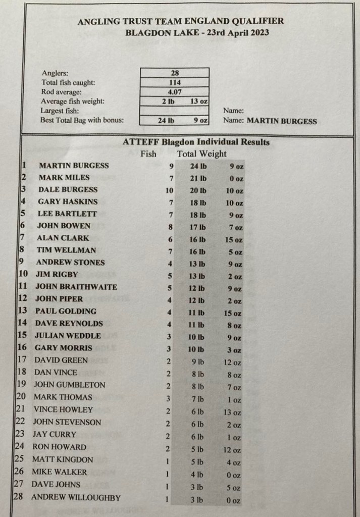 Qualifiers: 1. Dom Sheratte 2. Leigh Pond 3. William McHarrg 4. Andrew Haskins 5. Tim Joyce 6. James Pickford 7. Peter Baker 8. Paul Roach 9. Nicholas Tompkins 10.Nick Dunn 11.Craig Middleton 12.Mark Thomas 13.David Johns 14.Simon Bird 15.Mark Howard 16.Richard Denney 17.Paul Wild 18.John Brown 19.Andrew Axon 20.David Eames 21. Sean Porter