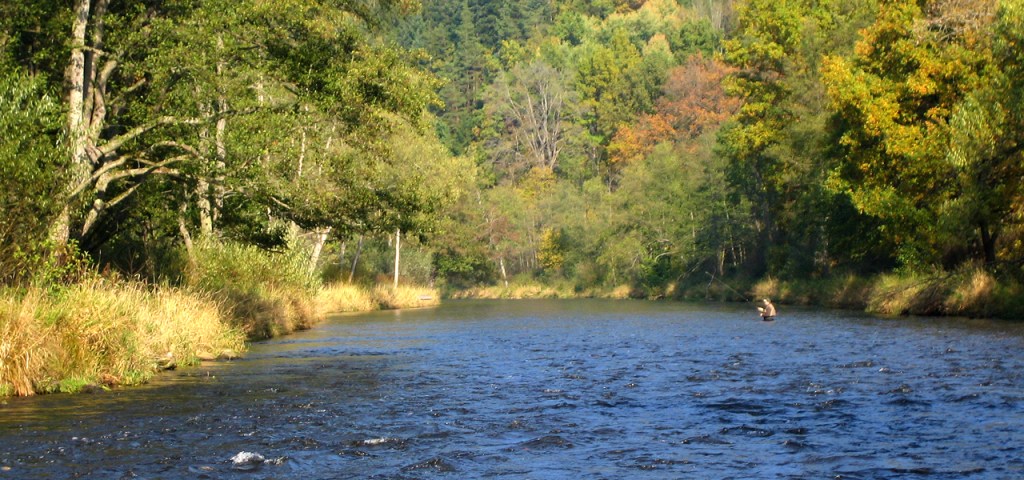 A beautiful piece of water between Lipno reservoir and the equalizing reservoir of Lipno 2. The flow is regulated all year-round and very stable, offering fishing for abundant native brown trout in a deep wooded valley, full of big boulders. Flyfishing here is very exacting, although the boulders are not slippery, it is necessary to ponder every step you take. The river width varies between 5–10m, depth ranges between 0.50–1.5m, but they are also pools with depths of 2m. In the lower part of the river stretch, there is also occasionally dace, grayling, brook trout and rainbow trout, but fish stock is dominated by native brown trout. We recommend to fish with a team of nymphs and carefully search every piece of water as in every pocket could be a trout. Dry fly is also important method. True competitors must show great fitness here, but even less physically fit competitors will find more accessible places to catch fish as individual pegs will be 200m long.