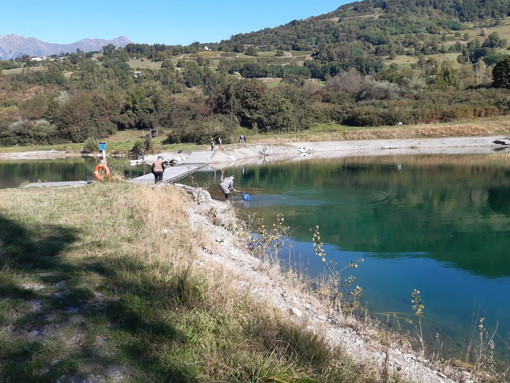 Paul Page reports: ‘The proposed reduction in the River Isere flow rate was cancelled on Tuesday afternoon by the local river authority, so at a hastily convened captain’s meeting it was agreed to peg another bank section on Lac de Tueda. It was a cold start to Session 1 on both lakes, however once the sun had risen above the high Alps, which dominated the skyline in every direction, another bright, sunny and hot day developed. Fishing was fast and furious on Lake Barouchat with 25 fish winning the 3 hour boat session and 27 off the bank. The Irish team were off to a flying start. Up on Lac de Tueda things were slightly slower with 13 and 6 fish winning the two sectors. This time both to the French team. Andy Taylor was pipped into 2nd place on Tueda with the same number of fish but Xavier Parent’s 49cms trout beat Andy’s biggest. Last day tomorrow, 3rd and 4th sessions.