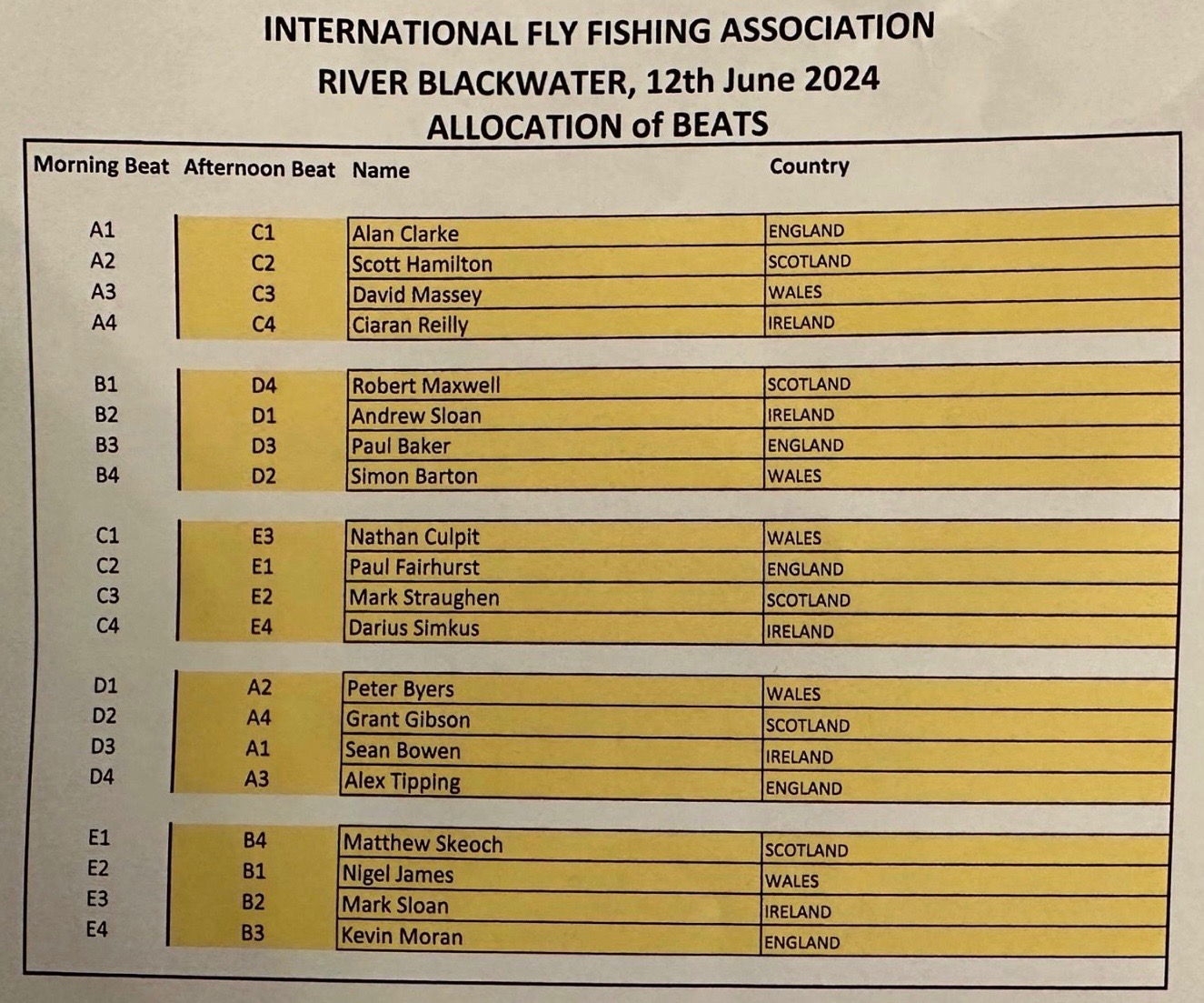 - Ireland 160 fish 6998.0 pts 27 placings