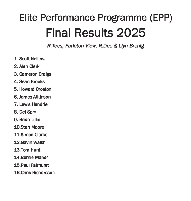 The EPP is the Elite Performance Programme, which is a competitive fly fishing programme established in 2018 in order to develop elite anglers and provide a framework for selections teams to represent England in World, European and now 5 Nation Championships.
