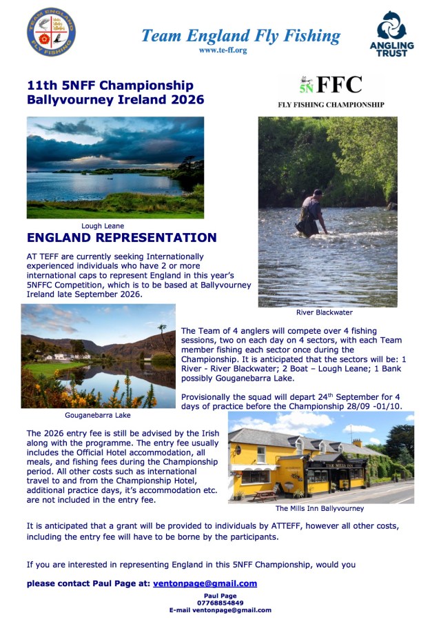 AT Team England Fly Fishing are inviting volunteers to support the forthcoming 5 Nations Fly Fishing Championships