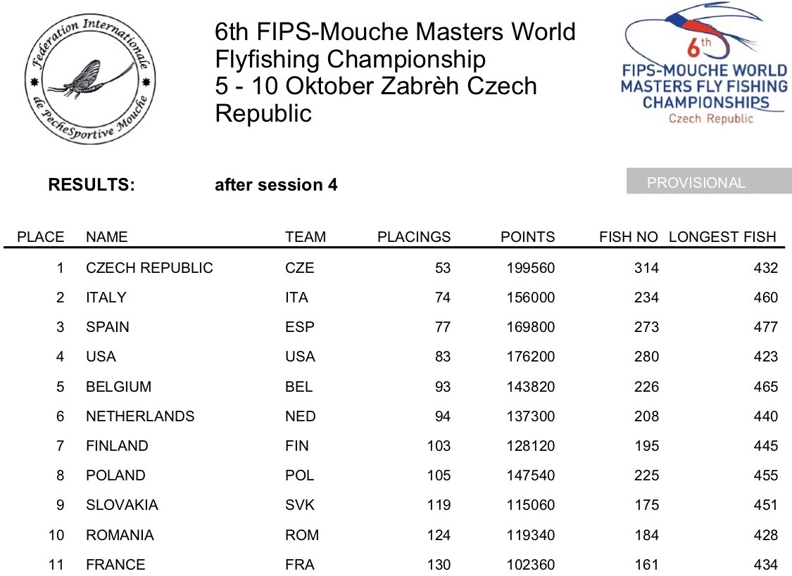 2024 Masters & Ladies World Fly Fishing Championships, Czech Republic – Final Results