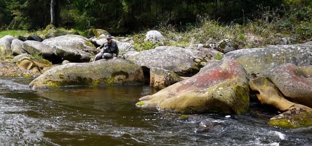 A beautiful piece of water between Lipno reservoir and the equalizing reservoir of Lipno II. The flow is regulated all year round and is very stable, offering fishing for abundant native brown trout in a deep wooded valley, full of big boulders. Fly fishing here is very exciting. Although the boulders are not slippery, it is necessary to ponder every step you take.