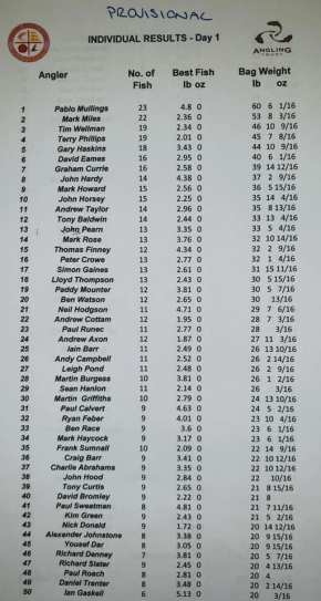 22. Gary Owen (Severn Trent) 8 fish – 15-4 5/8